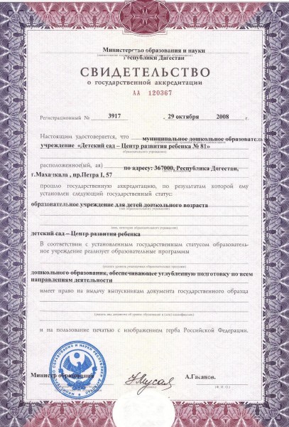 | Адрес местонахождения образовательной организации* | 367018 г. Махачкала, проспект Петра I № 57 |